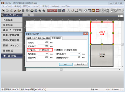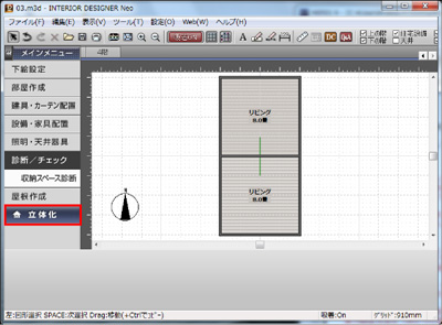 第3回で部屋の床高を上げたデータをそのまま使います。「間取り編集」をクリックして間取り画面に戻ります。