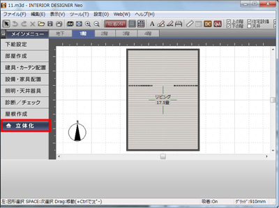 「立体化設定」を選択して「幅木」「廻り縁」のチェックを外します。
