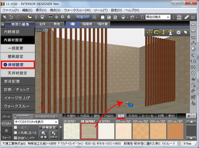 床材設定から床材のテクスチャを貼ります。 |