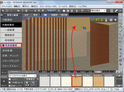 天井材設定から「天井材」のテクスチャを貼って終了です。 |