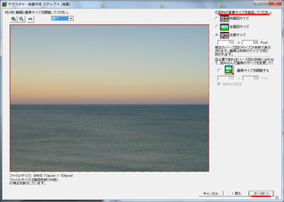 「テクスチャ・背景作成ステップ4(背景)」が表示されます。ここではサイズの調整や切り抜きができます。必要に応じて調整した後に「次へ」をクリックします。