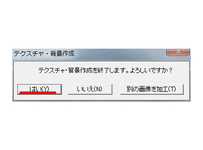 「テクスチャ・背景作成を終了します。よろしいですか」のメッセージが表示されます。「はい」をクリックします。 |