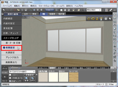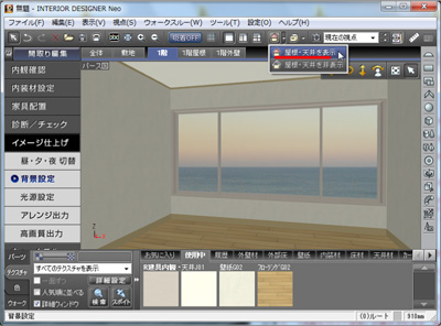 指定された背景に変更されました。「屋根・天井を表示」を選択して終了です。 |