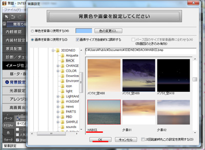 背景設定が表示されます。「12」で入力したファイル名を選択して「OK」をクリックします。 |