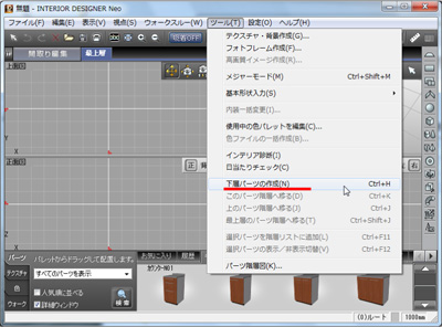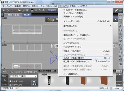 「ツール」から「上のパーツ階層へ移る」を選択します。 |
