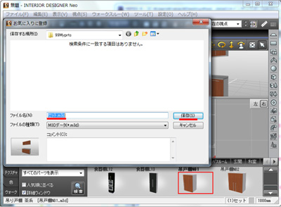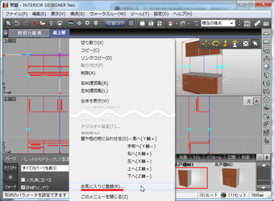 組み合わせたパーツが赤線でひとつに選択されたことを確認して右クリックから「お気に入りに登録」を選びます。 |