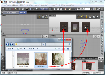 画像ファイルを選択して貼り替えたい絵画パーツにドラッグ&ドロップします。 |