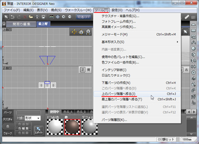 「ツール」から「上のパーツ階層へ移る」をクリックします。 |