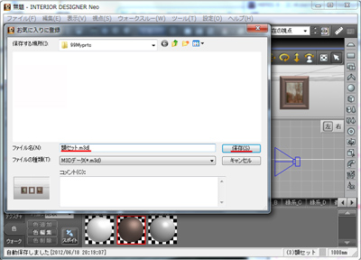 パーツパレットの「お気に入り」に先程登録した「額セット」が登録されています。