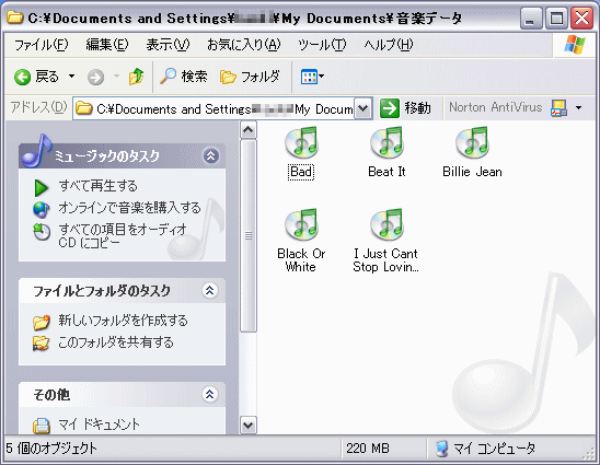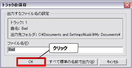 この説明では、「マイドキュメント」に「音楽データ」というフォルダを作成して書き出しました。 |