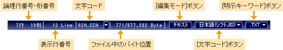 必要な情報をすばやく得ることができ、またカレントウィンドウの編集モードも変更できます。