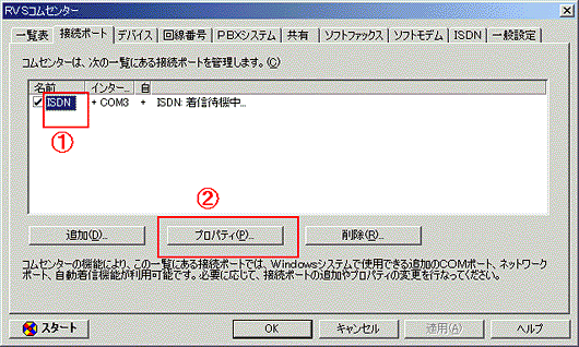 | 2)[ ISDN ]タブダイアログの[インターフェース]タブを開きます。 |