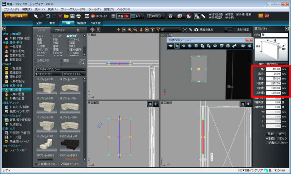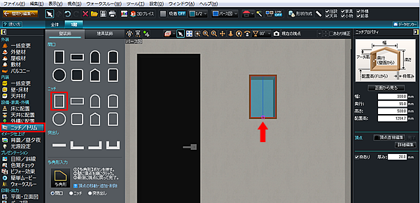 ※ニッチの幅や高さは、ニッチを選択すると表示されるニッチプロパティで変更します。