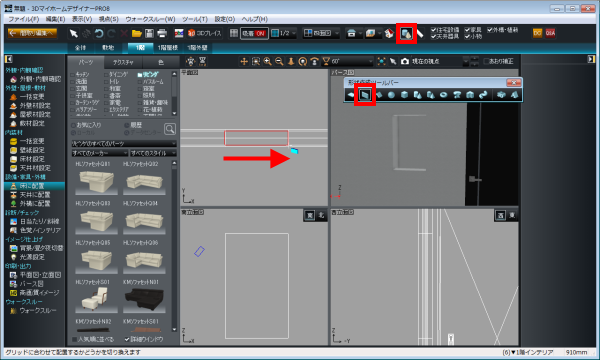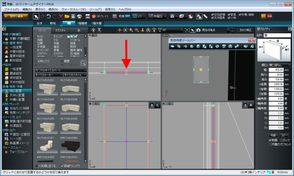 5. 平面図上でサイズ調整した壁をドラッグし、ニッチの奥側に配置します。