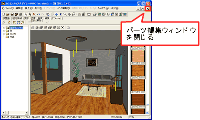 室内空間の編集が終わったら、このウィンドウを閉じ、手順3の画面に戻ります。 |