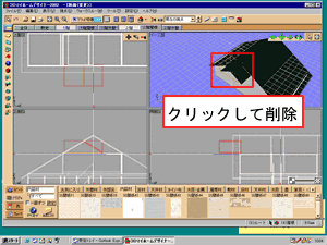 最初に屋根を削除します。「2階屋根」タブをクリックし、屋根を選択して「Delete」キーで削除します。 |