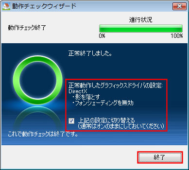 動作チェックウィザードで設定された環境でも動作が不安定な場合は、次の手順でグラフィックスライブラリの設定を変更してください。