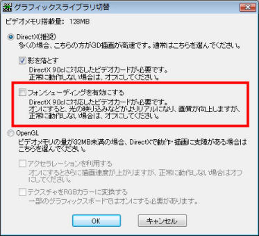 - 「フォンシェーディングを有効にする」をオフにして[OK]をクリックします。