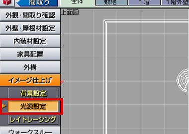ナビの[ イメージ仕上げ ]から[ 光源設定 ]を選択します。 |