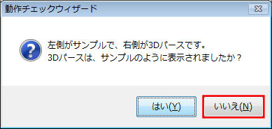 - サンプルとパース図が同じように表示されたら確認メッセージの[はい]をクリックし、[動作チェックウィザード]の[終了]をクリックします。