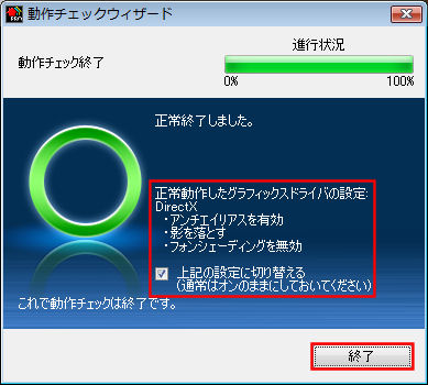 - [次へ]をクリックして、別の設定でビデオボードのチェックをおこないます。