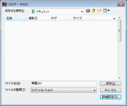 ・ファイルの種類:DXF形式かJW_CADG形式の必要な形式に切り替えます。
