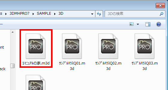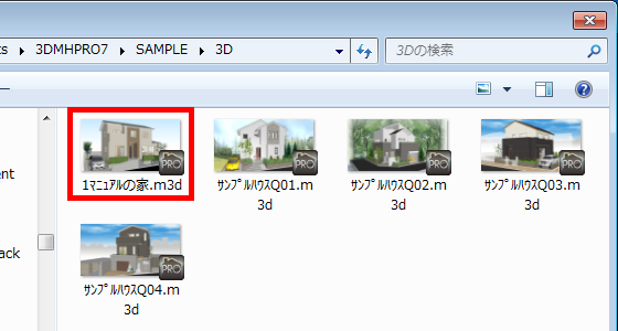 そのため、「M3dThumbnailProvider64.dll」が登録できなくても、M3D形式(*.m3d)のファイルがほかのアプリケーションのファイルと同じように表示されるだけで、「3DマイホームデザイナーPRO7」自体の動作には、何も問題ありません。