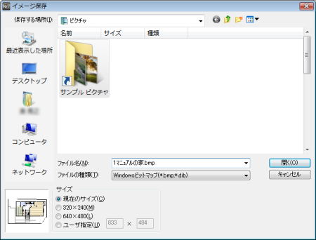 ・サイズ:イメージ保存する画像のサイズを選択します。