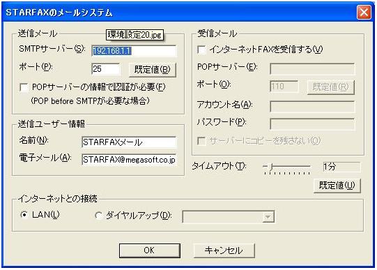[STARFAX環境設定]→[通信経路]→[インターネットFAX]→[OK]