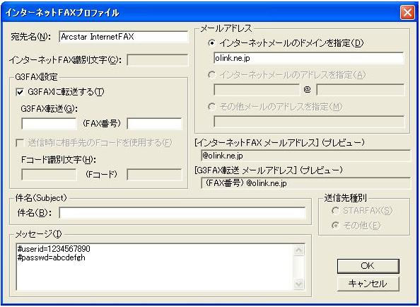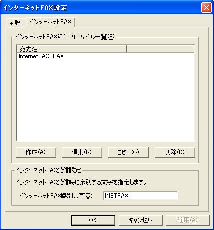 インターネットFAX”送信用”のプロファイルが表示されます。