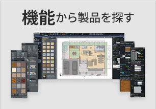 間取/パース作図機能、レンダリング動画作成、CAD機能も搭載した最上位製品。他社3Dソフトとの連携も充実。