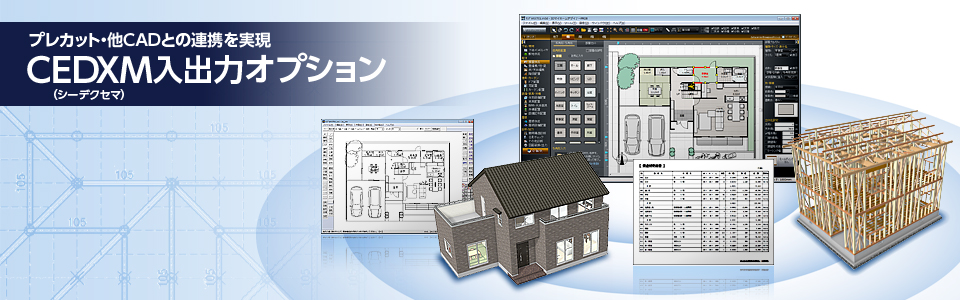 - 『木造住宅CAD/CAMデータ連携標準化評議会(CEDXM評議会)』が策定したプレカットCADのデータ交換フォーマットです。