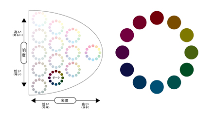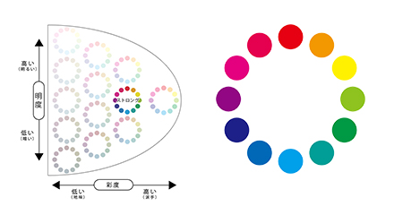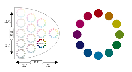例えば、同じ「赤」でも明度や彩度の高さ、低さ、つまり「トーン」によってずいぶん印象が異なります。
