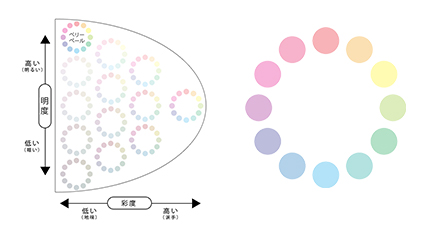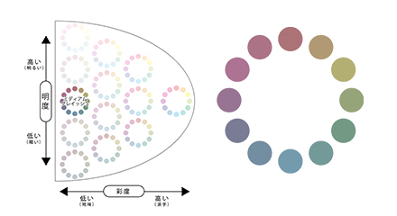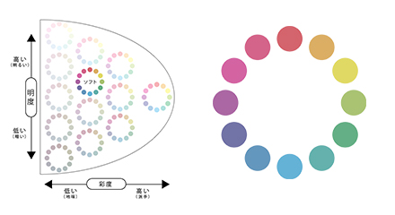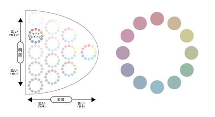 中彩度、中明度なので、穏やかで優しい雰囲気のソフトトーン