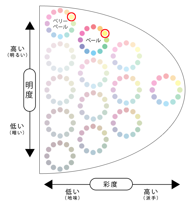 (例)ベリーペールトーンのイメージ:優しい、かわいい