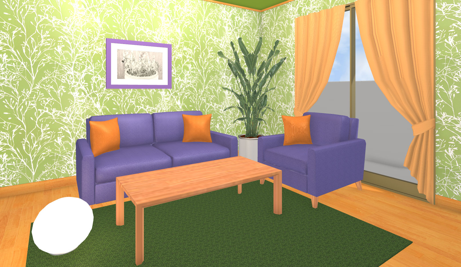 高彩度の明快なコントラストがある2色の配色です。2色の中に白や黒を入れることもできます。