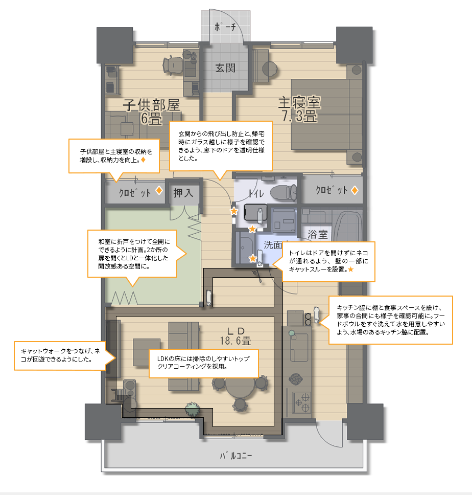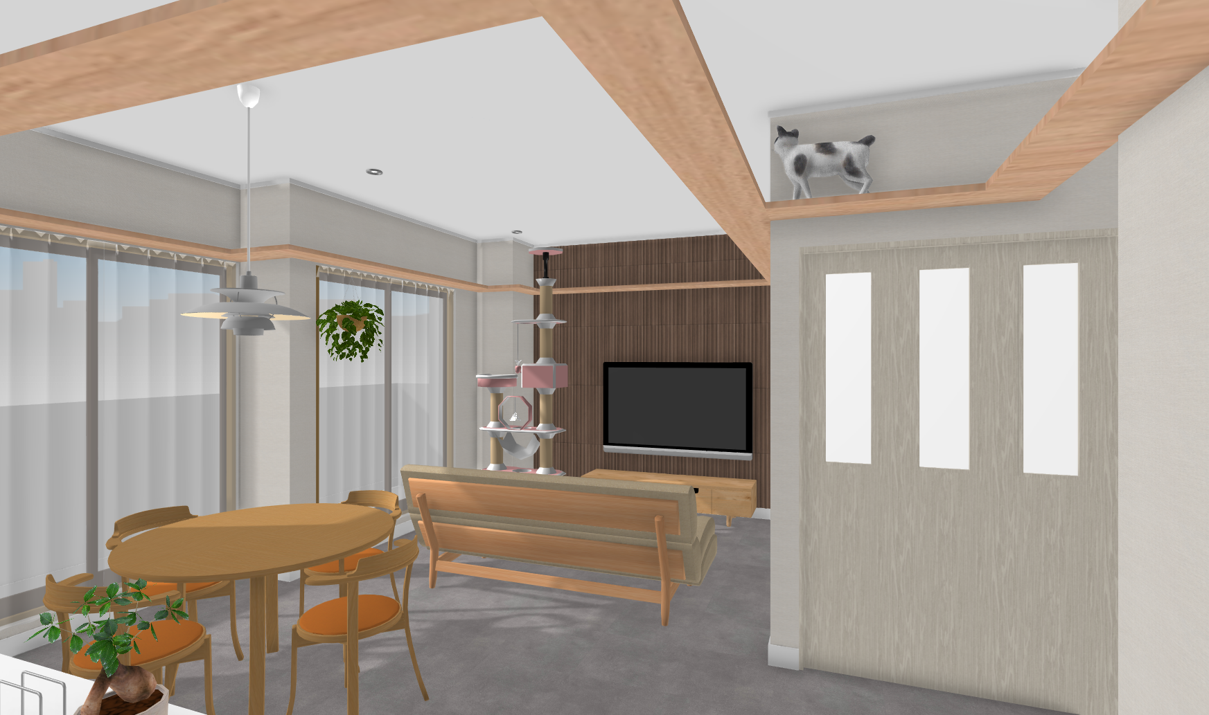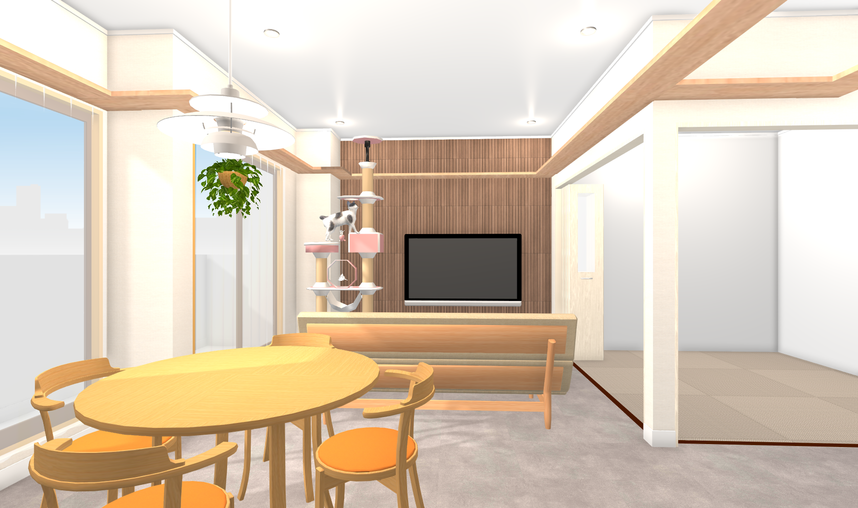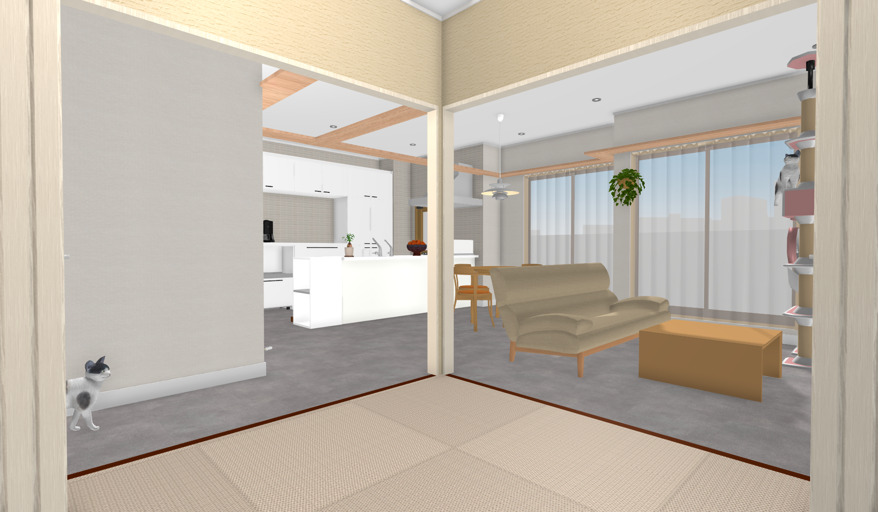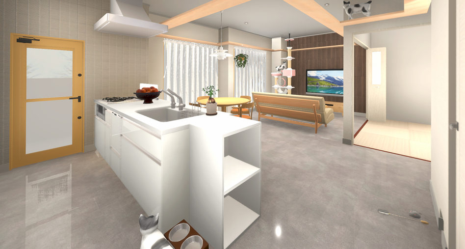 なるほど。収納力アップとネコちゃんが快適に過ごせる工夫と開かれた和室空間ですね。