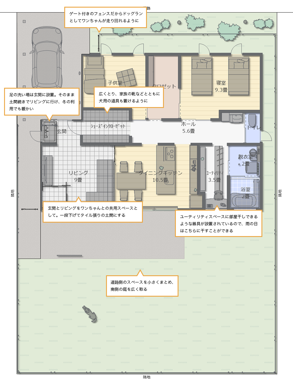 ワンちゃんの事をよく考えてくれた間取りをありがとうございます!