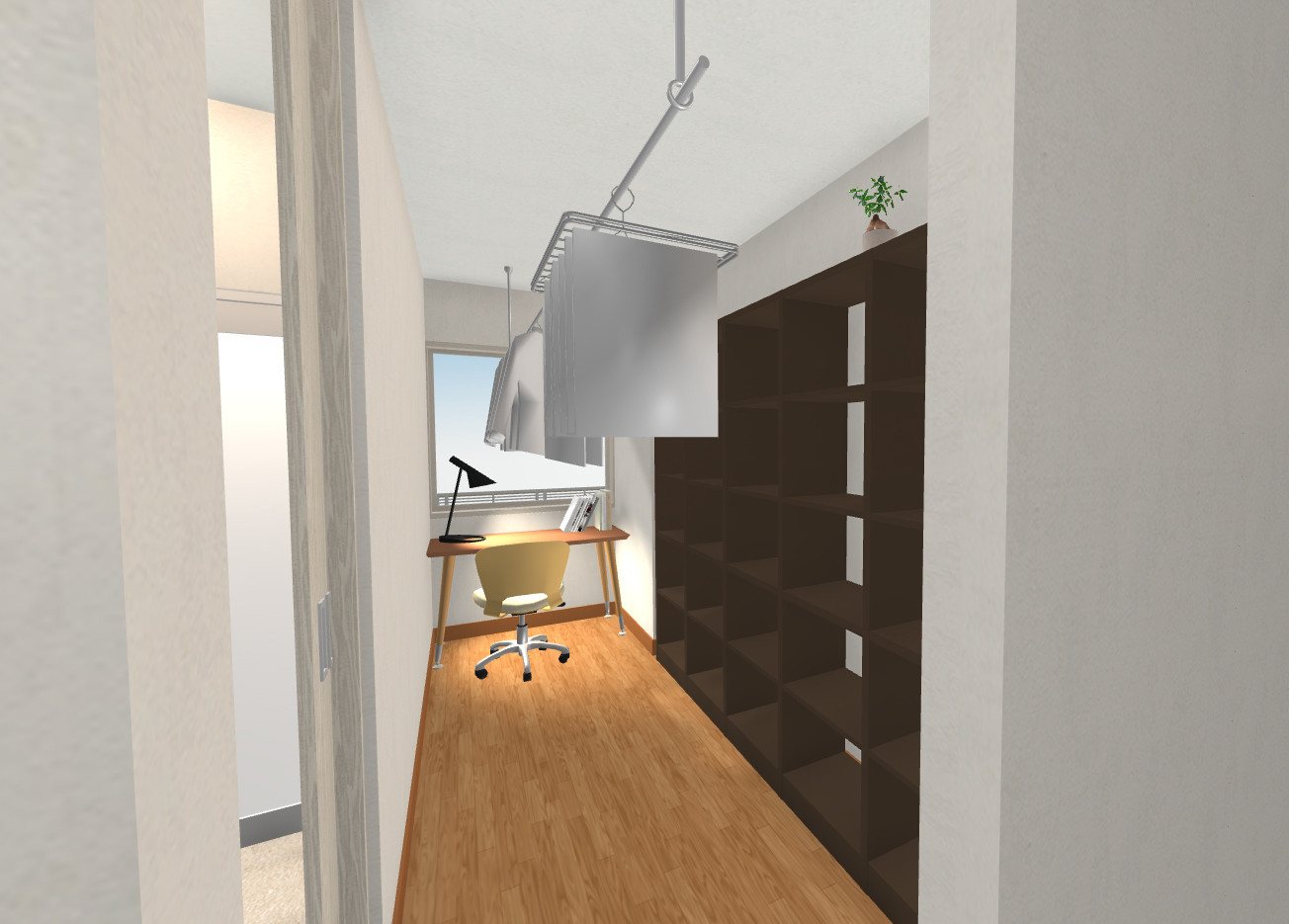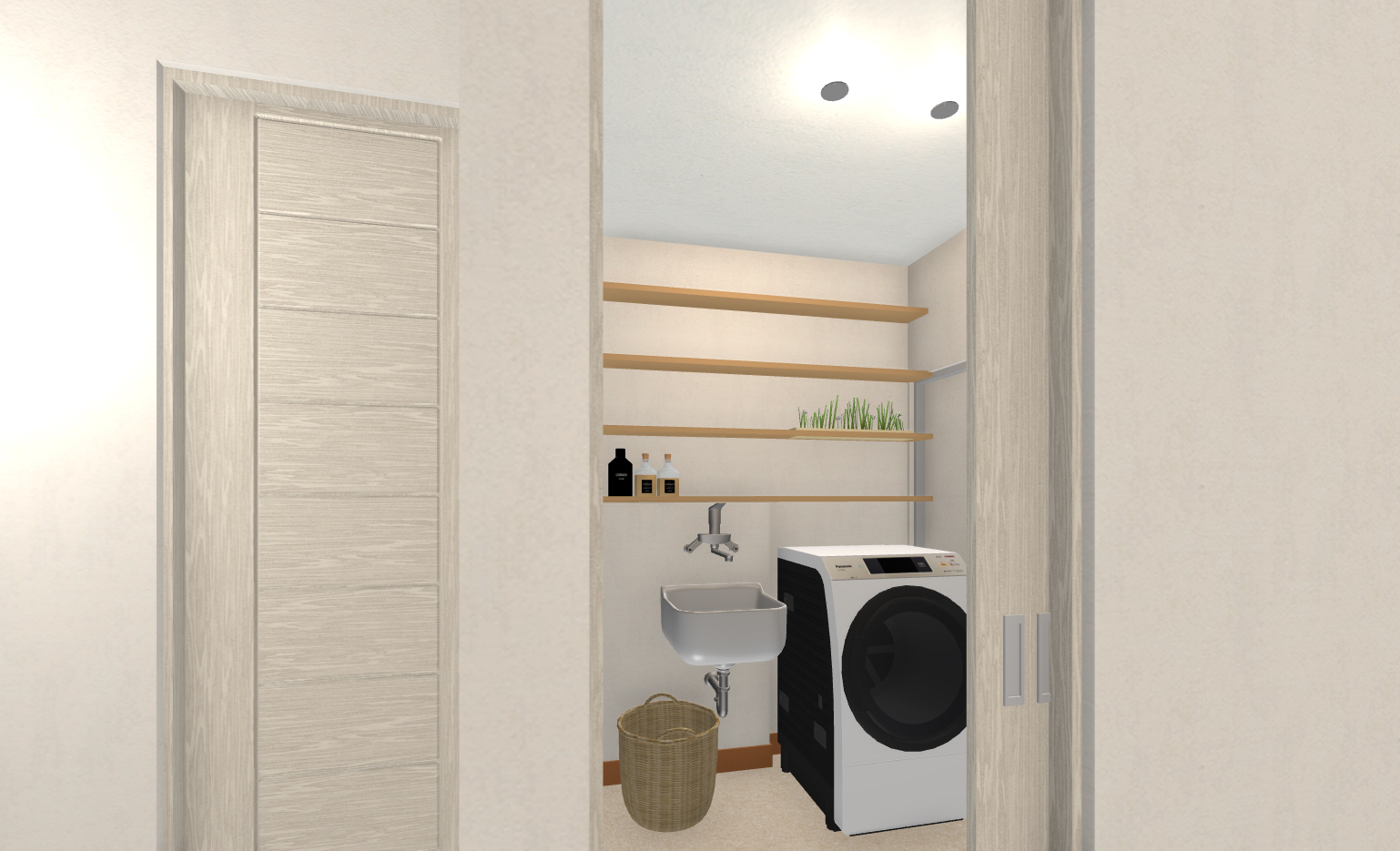 ユーティリティスペースに部屋干しできるように器具を設置。雨の日はこちらに洗濯物を干すことができます。