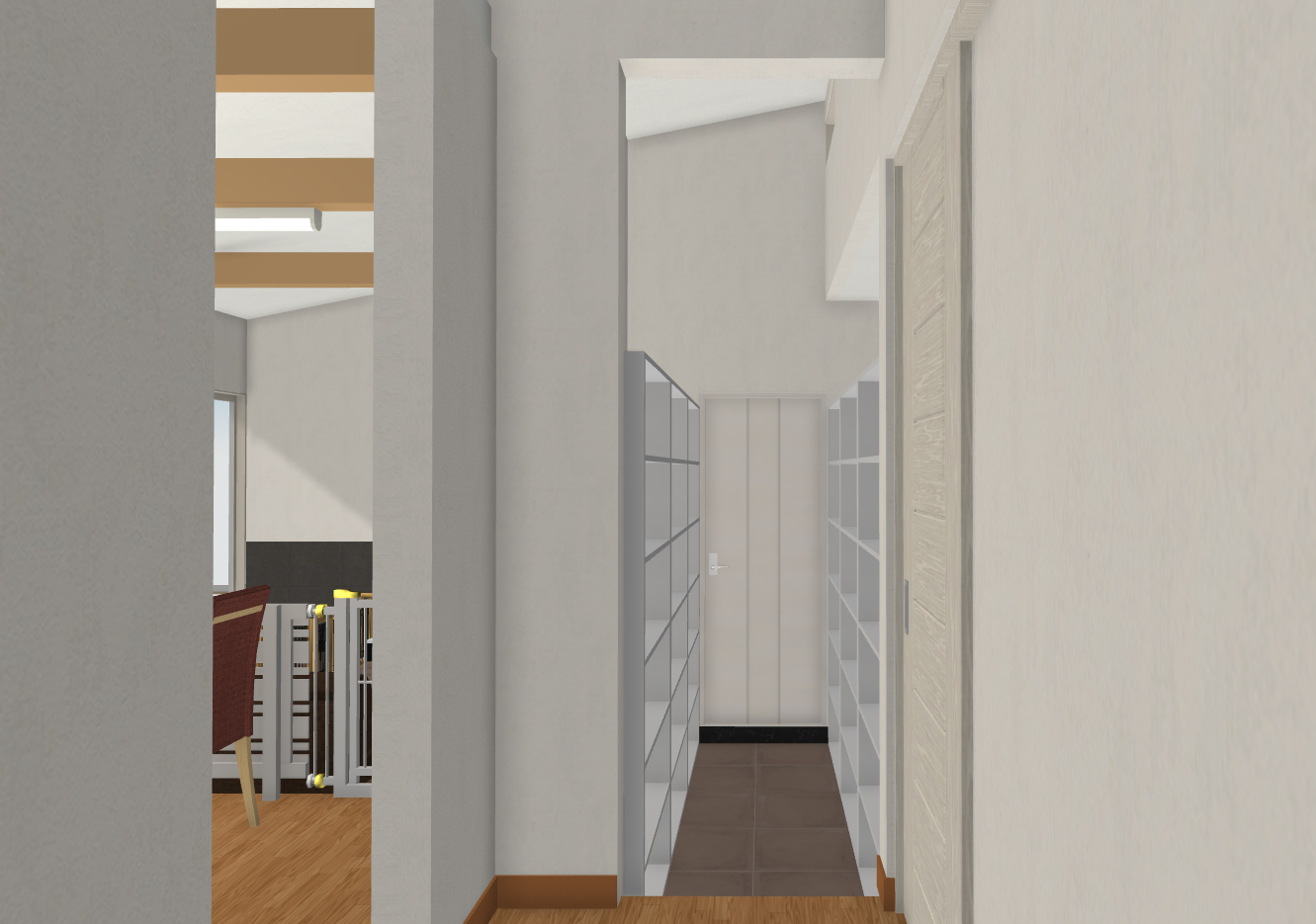 シューズインクローゼットを広くとり、家族の靴などとともに犬用の道具も置けるようにしました。専用の道具洗い場や洗濯機など必要になっても、十分対応可能な広さです。