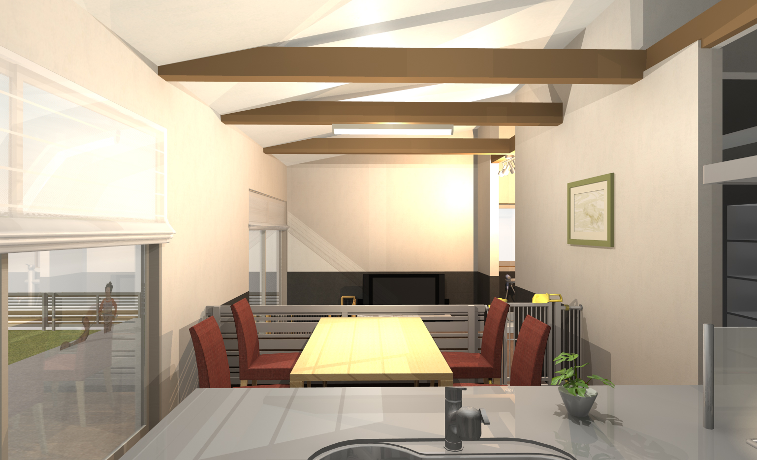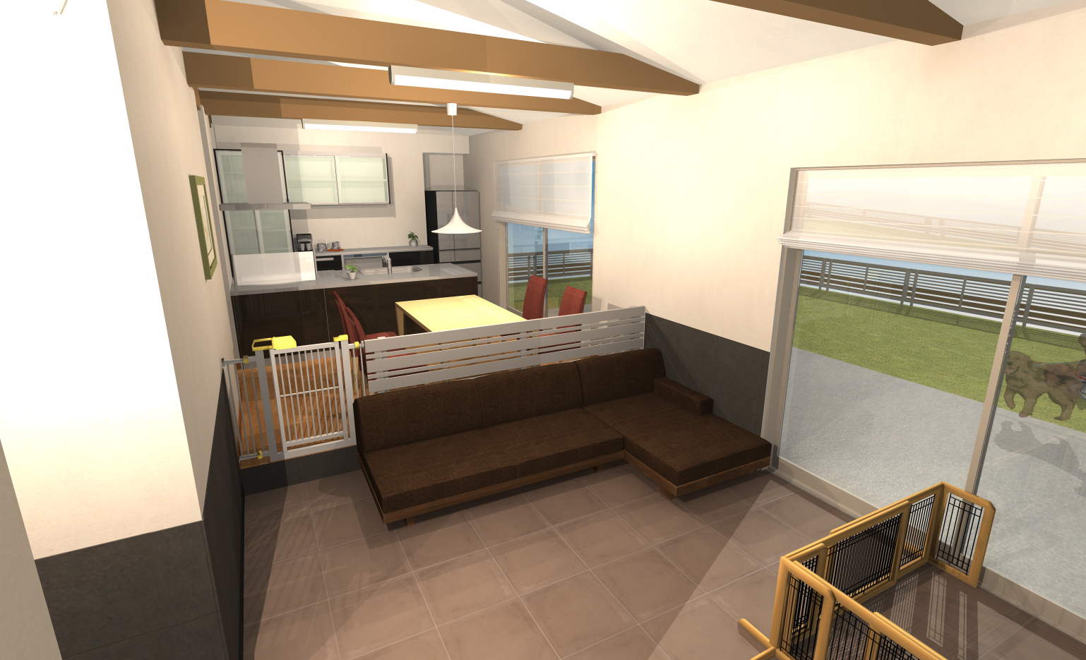 キッチンからリビングまで見渡せることができていいのですが、食事の時に犬のスペースと家族のスペースを分けたい場合、ダイニングとリビングの間を仕切る良い方法などを教えてください。