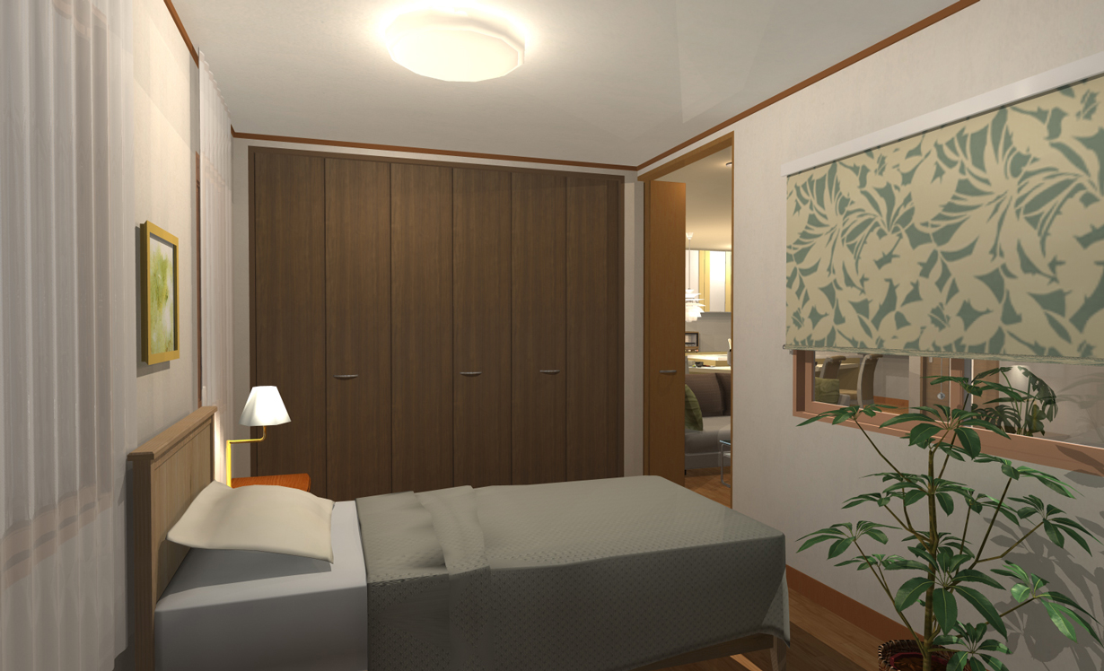 寝室は、ベッドがバリアフリー化の変化に対応できるようにしました。