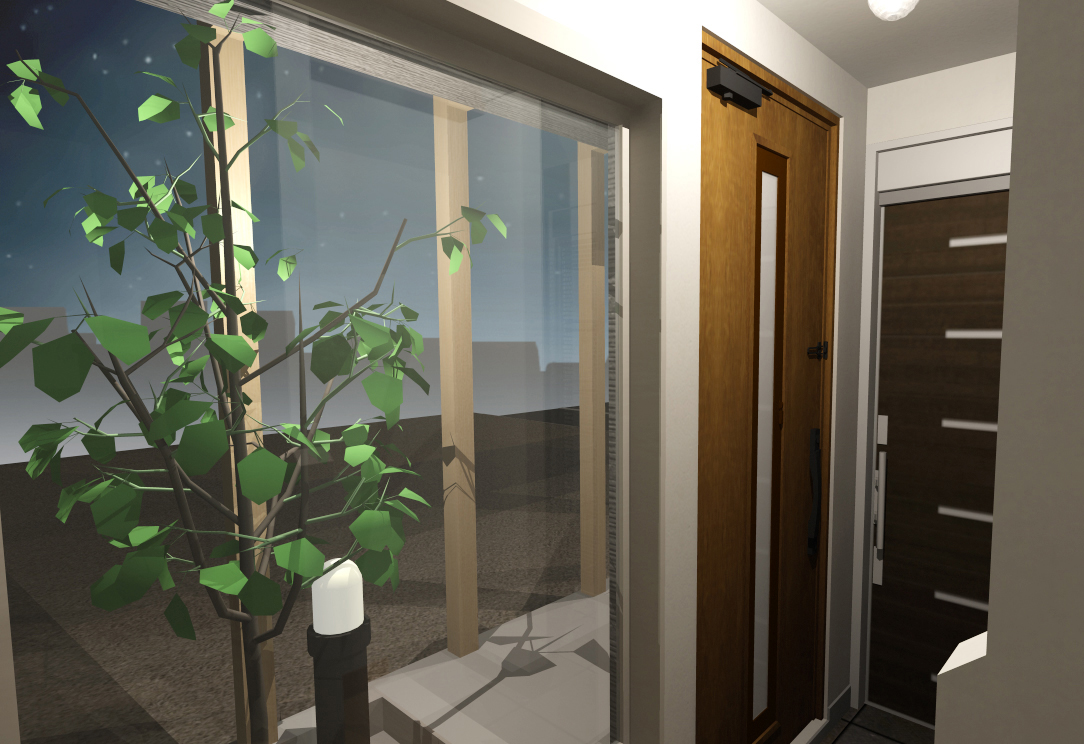 面積がギリギリの狭小住宅プランですのでなかなか難しいのですが、検討してみました。