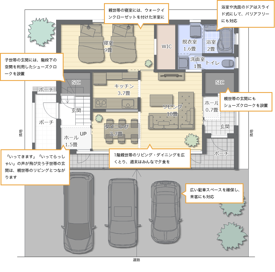 二世帯がそれぞれの生活を大切に暮らせる間取り