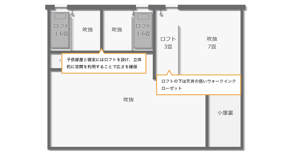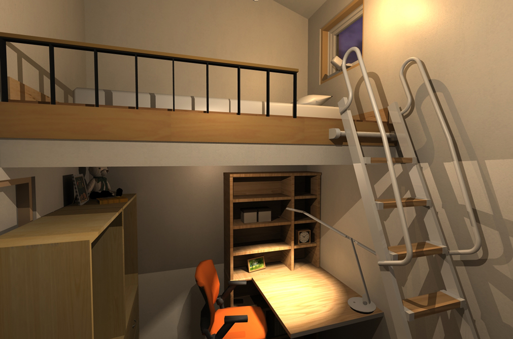 子供部屋は小さいですがロフト付きで立体的に使えるように計画。