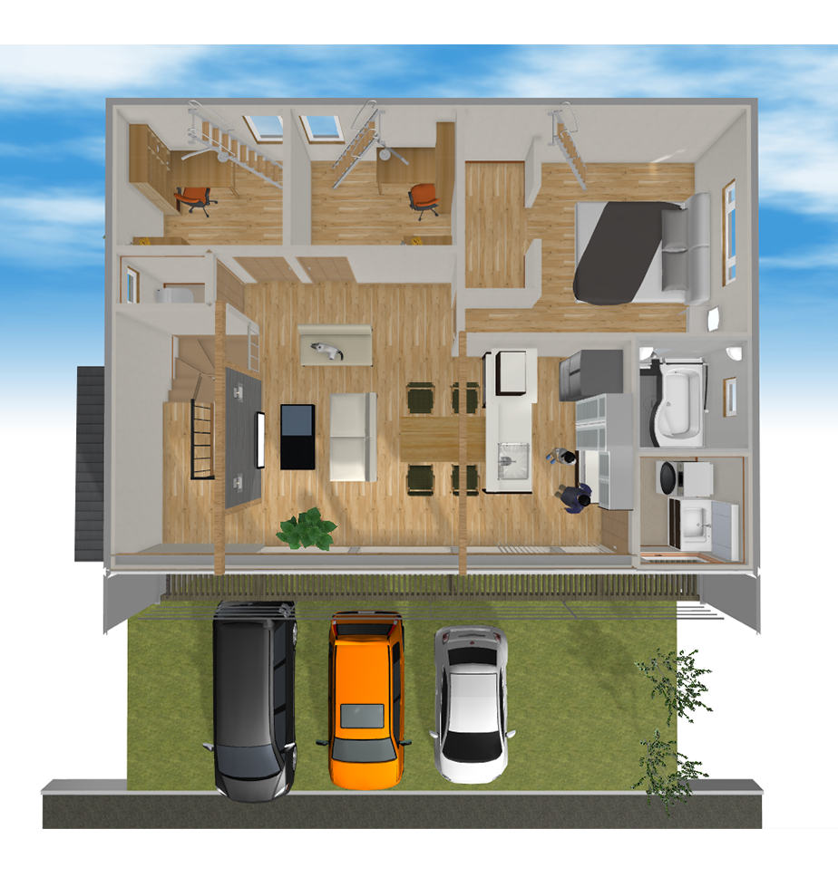 このページの間取りやパースは3Dデザイナーシリーズで作成しています。