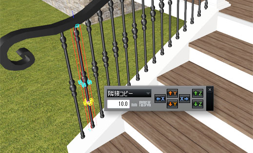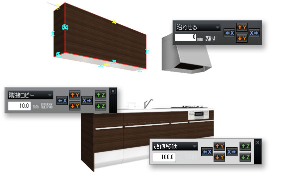 指定した距離分移動させたり、等間隔にコピーしたり、壁や物に沿わせるといった操作をより簡単に行えます。