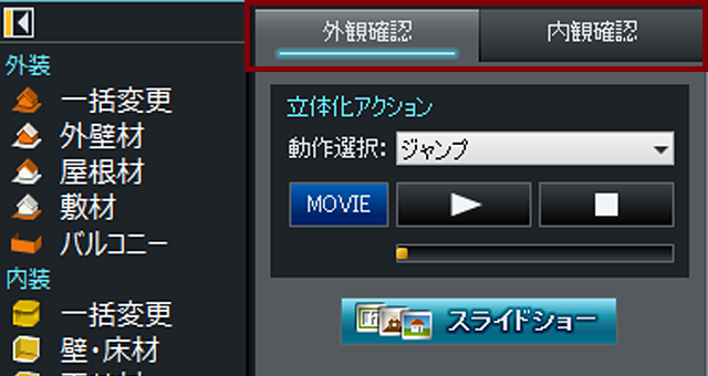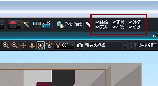 パレットの[一面ずつ]のチェックボックスをオンにしてから貼り付けると、壁一面ずつ貼り分けができます。