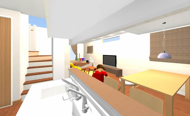 家内は洗濯・物干しについてこだわりを持っていたので、バルコニーの向きや日当たりを検証する際に、「日当たりチェック」が役立ちました。また、キッチンからのリビングの眺めもこのソフト(3Dマイホームデザイナー)があったからわかったのだと思いますね。