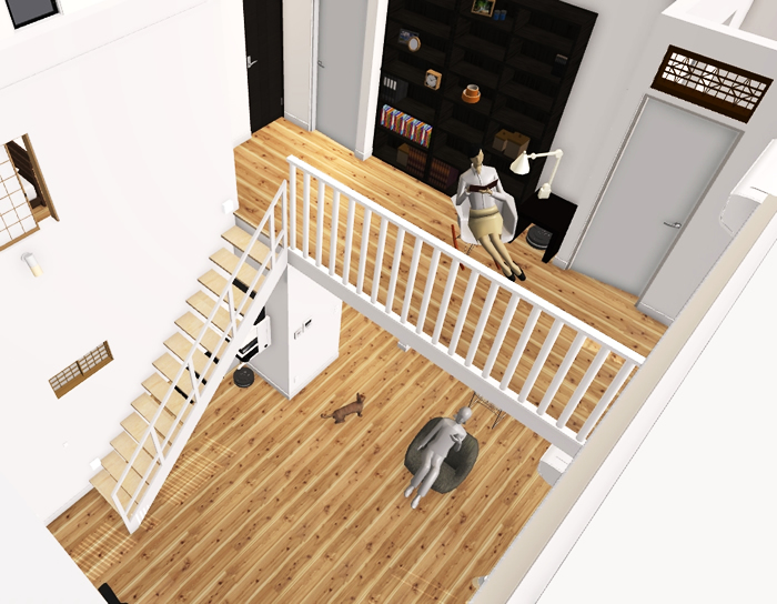 その点、マイホームデザイナーであれば細かい数値を入力して配置したり、オリジナルでテクスチャーを作成できるので雰囲気がつかみやすく良かったです。設計の打ち合わせでも「こんな感じにしたい」という要望をマイホームデザイナーの出力画像で伝えやすく役に立ちました。